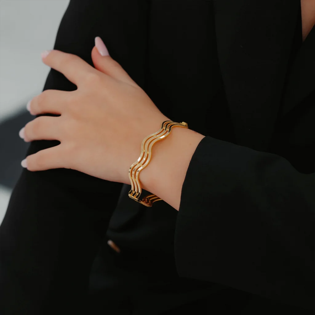 Su Dalgası Ajda Kelepçe Altın Bileklik AABLK0121