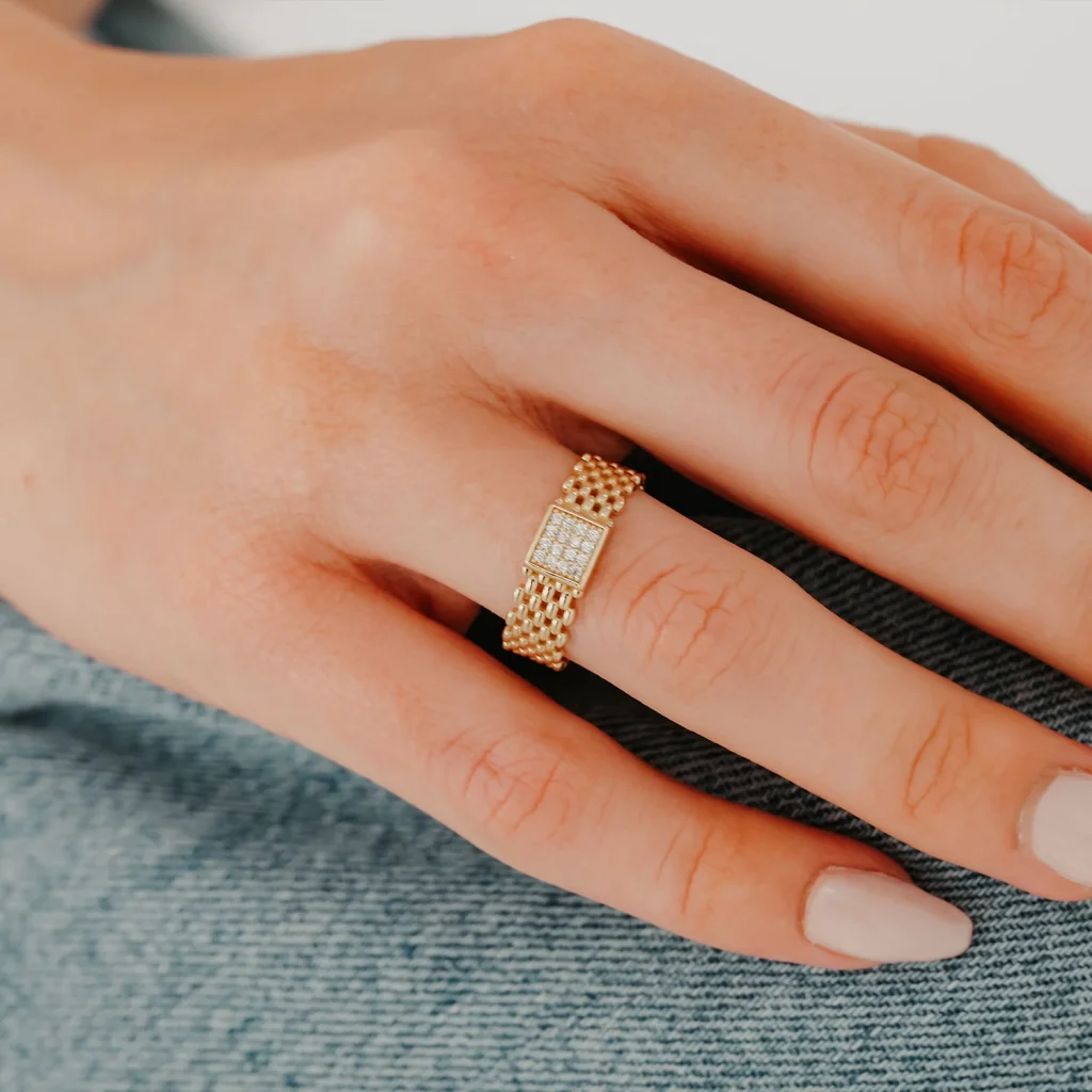 Kare Taşlı Toptop Altın Yüzük AAYZK0132