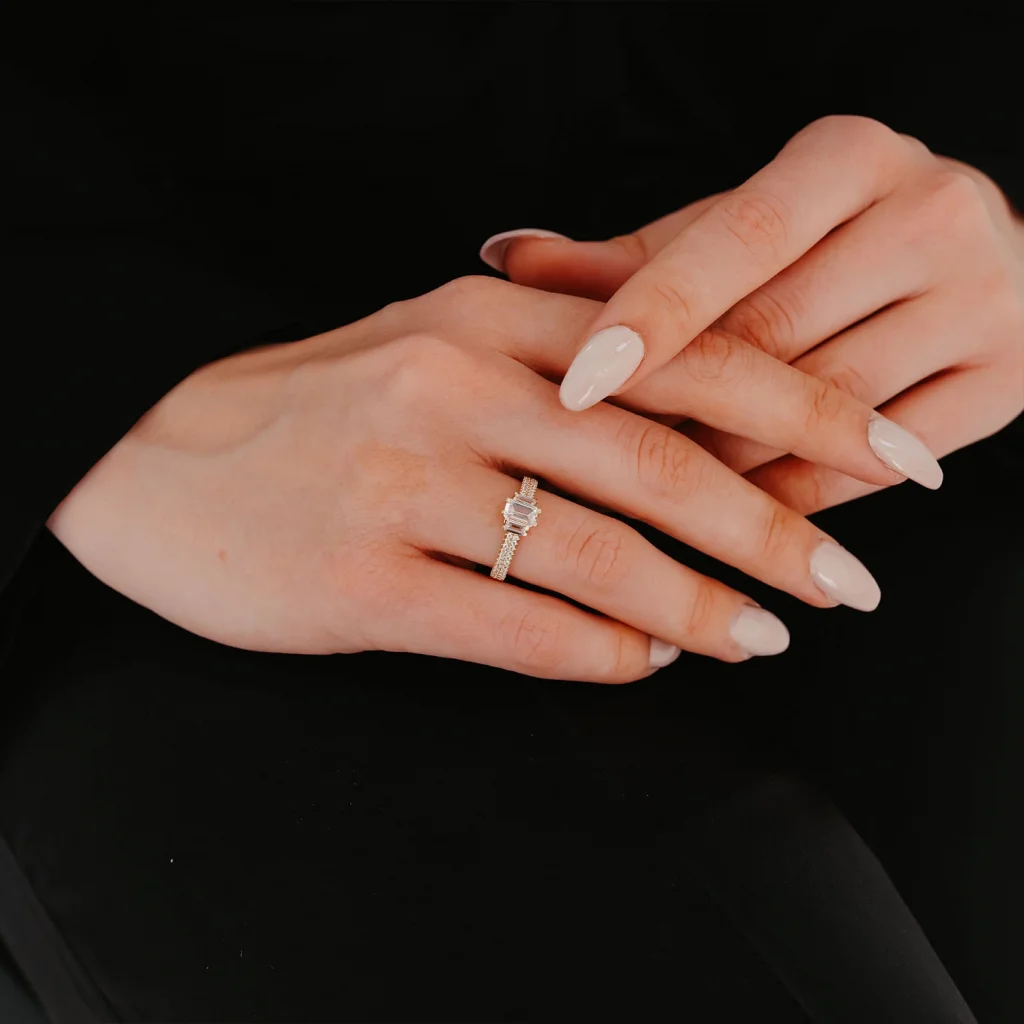 Altıgen Beyaz Mineli Tektaş Altın Yüzük AAYZK0220