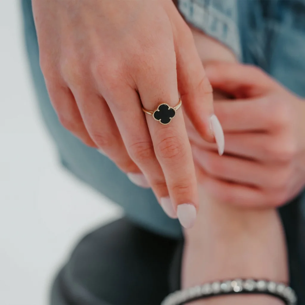2,17 Gram 14 Ayar Siyah Mineli Yonca Altın Yüzük AAYZK082