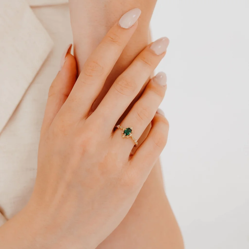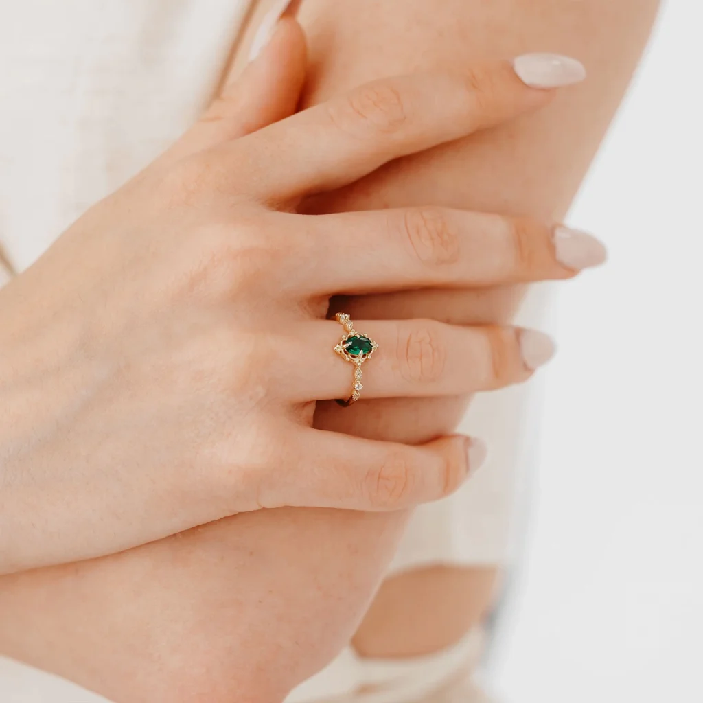 Yeşil Taş Vintage Altın Yüzük AAYZK042
