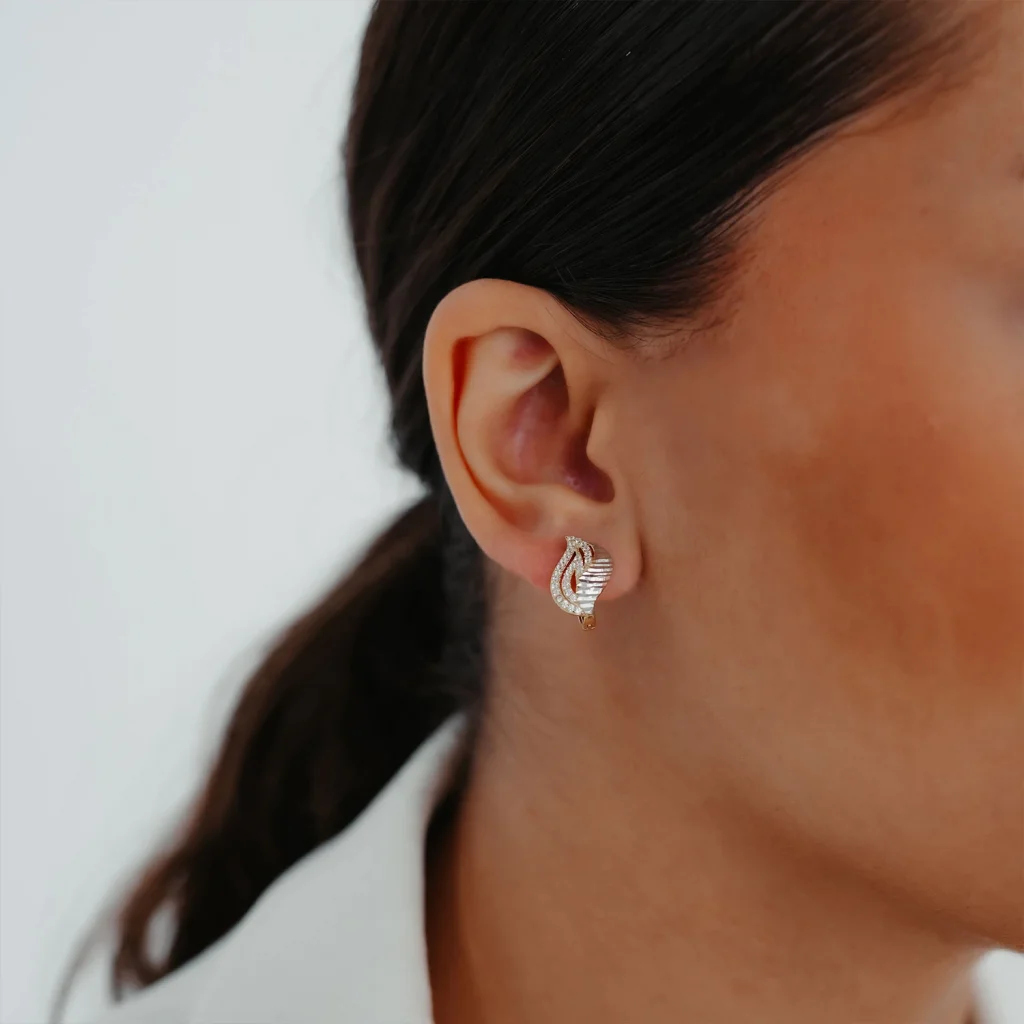 2.16 Gram 14 Ayar Taş Detay Yaprak Formunda Altın Küpe AAKPE014