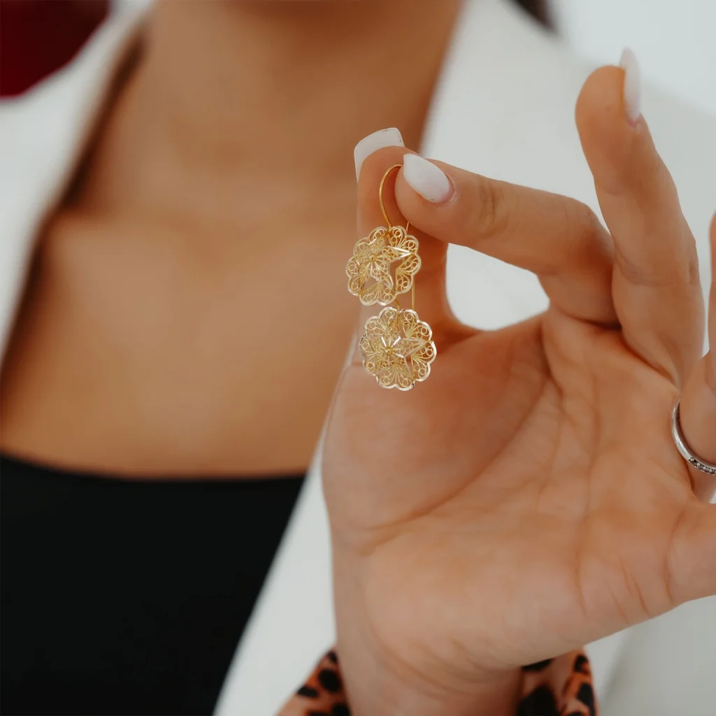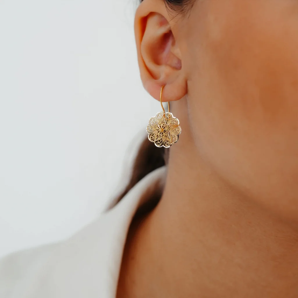 1.84 Gram 14 Ayar Gül Motifli Telkari 3 Altın Küpe AAKPE005