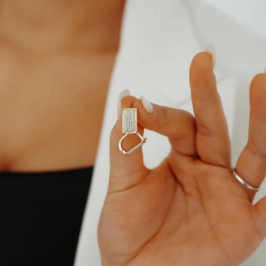 Taşlı Dikdörtgen Halkalı Altın Küpe AAKPE017