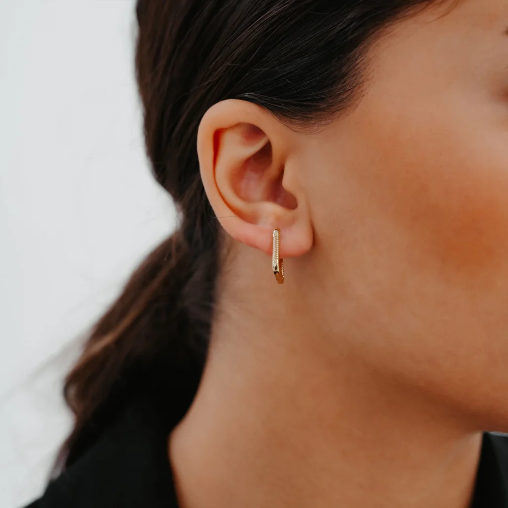 Çizgi Plaka Halka Altın Küpe AAKPE092