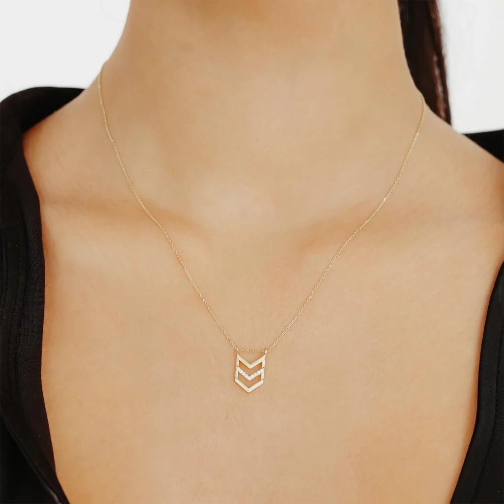 1.78 Gram 14 Ayar Taşlı V Plaka Altın Kolye AAKLY018