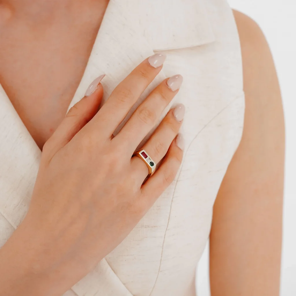 2,36 Gram 14 Ayar Zümrüt Bordo Mineli Şövalye Altın Yüzük AAYZK097