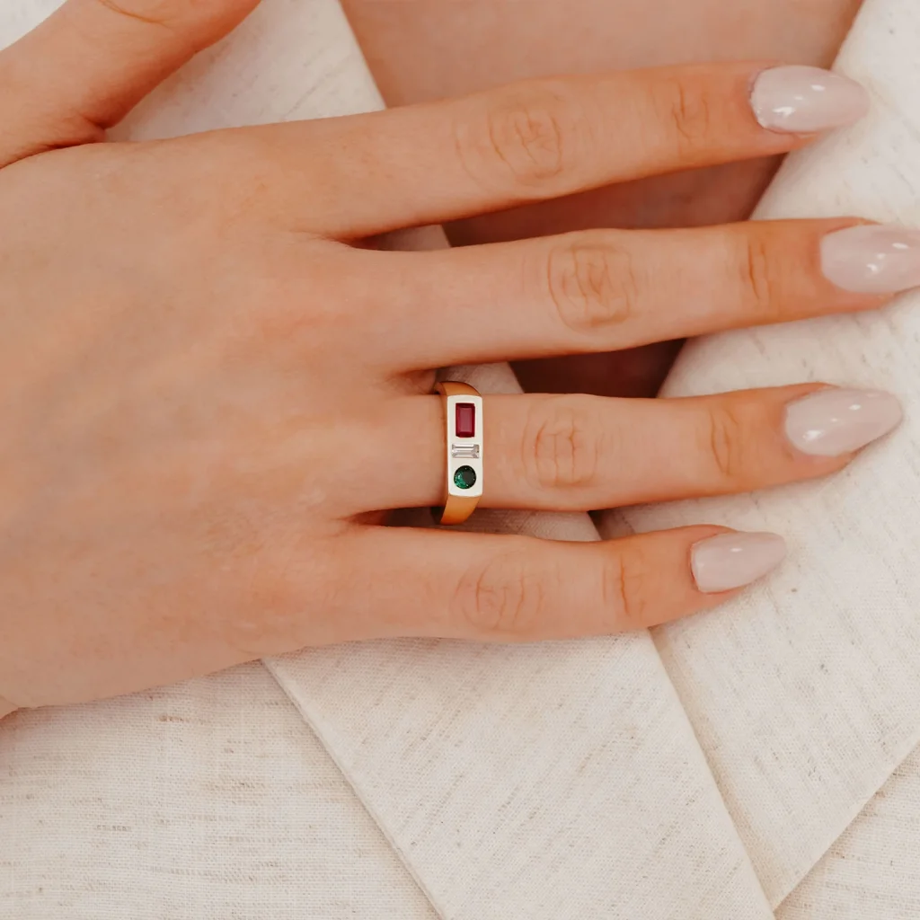 Altıgen Beyaz Mineli Tektaş Altın Yüzük AAYZK0220