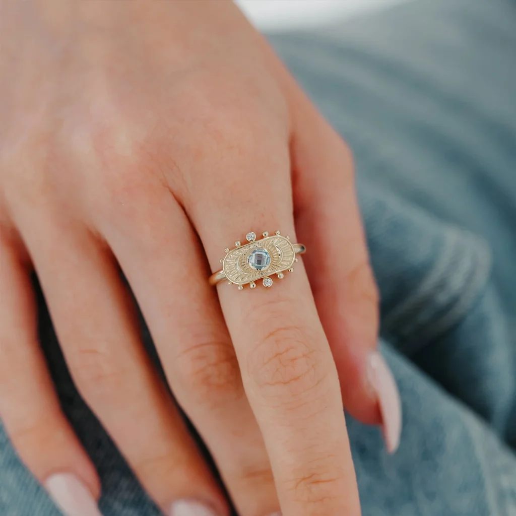 Göz Figürlü Beyaz Taşlı Altın Yüzük AAYZK067