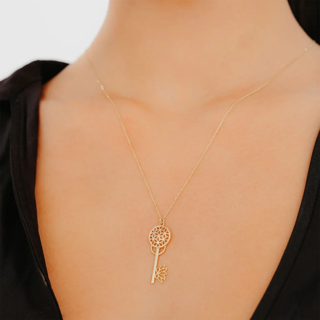 2.31 Gram 14 Ayar Lotus Çiçekli Anahtar Altın Kolye AAKLY052