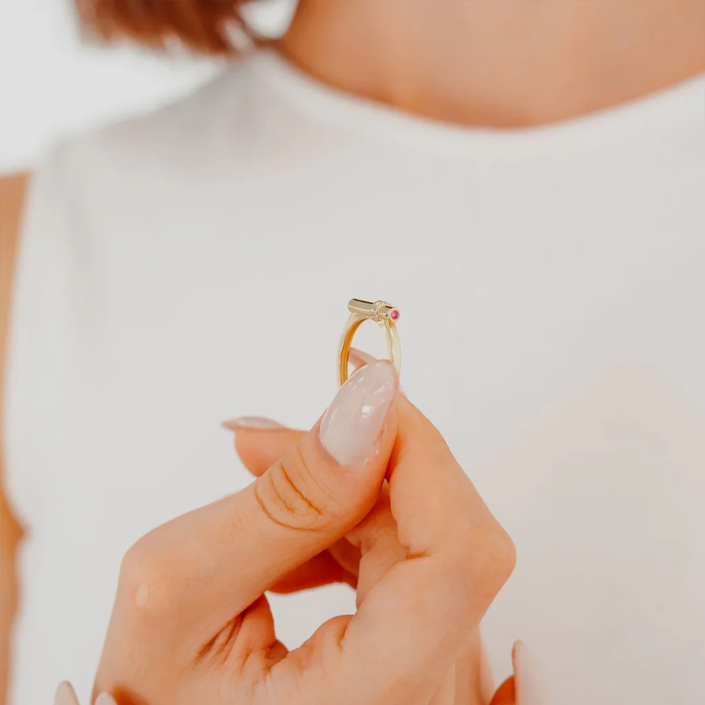 Altıgen Beyaz Mineli Tektaş Altın Yüzük AAYZK0220