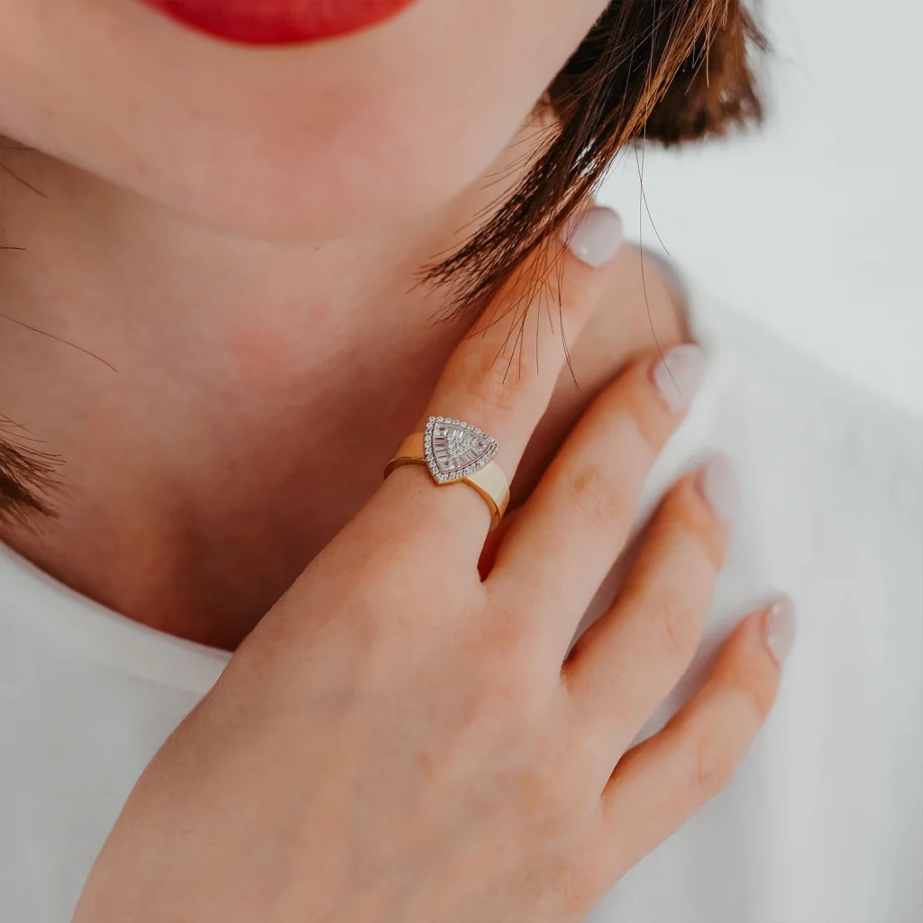 Mineli Taşlı Üçgen Altın Yüzük AAYZK0218