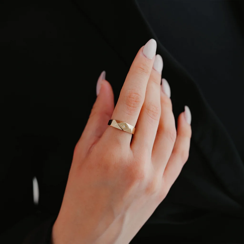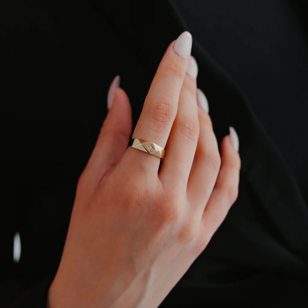 2,06 Gram 14 Ayar Mineli Kutup Yıldızlı Prizma Altın Yüzük AAYZK072