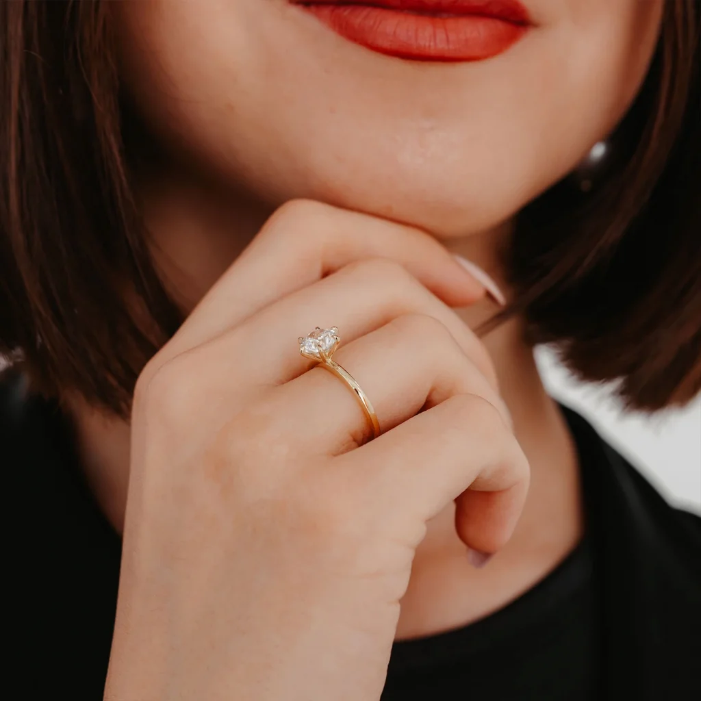 Altıgen Beyaz Mineli Tektaş Altın Yüzük AAYZK0220