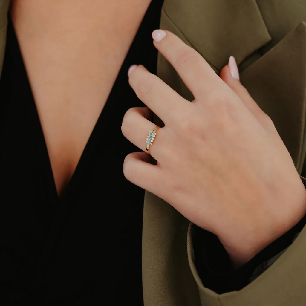 Turkuaz Detay Dikey Taş Altın Yüzük AAYZK0170