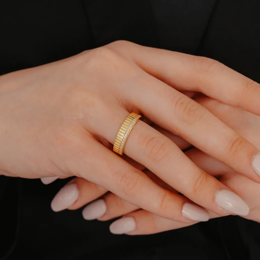 Taşlı Dağınık Sütun Model Altın Yüzük AAYZK0223