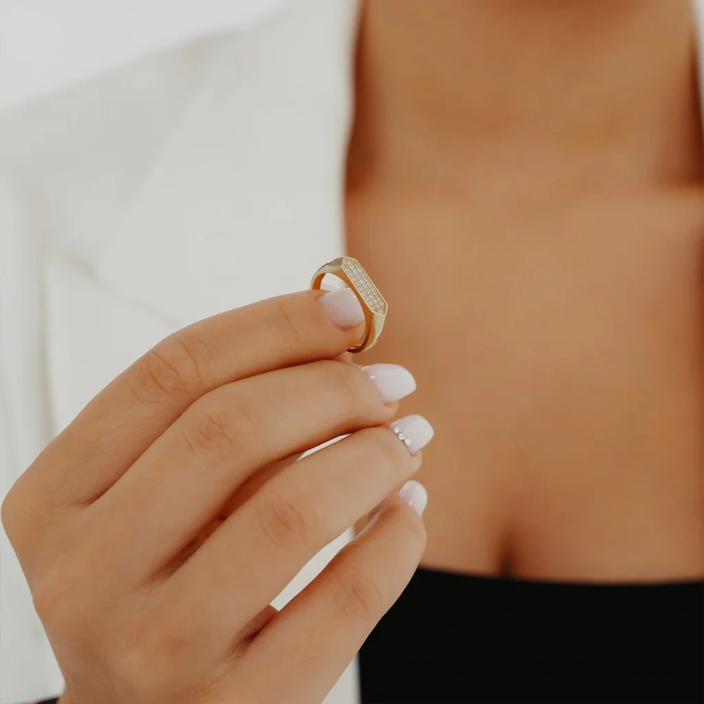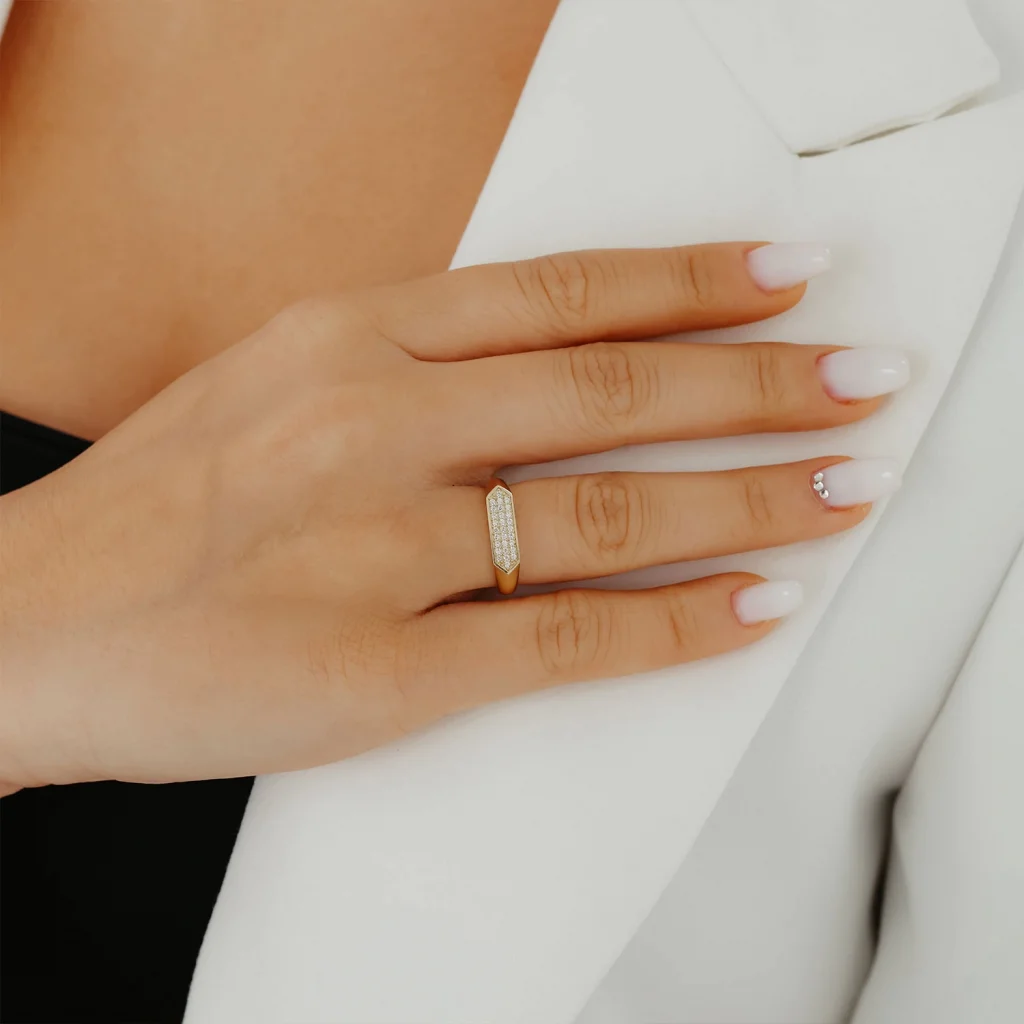 Altıgen Beyaz Mineli Tektaş Altın Yüzük AAYZK0220