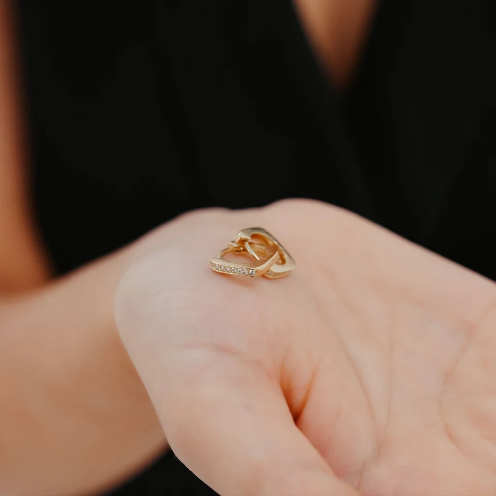 Taşlı Kıvrımlı Halka Altın Küpe AAKPE089