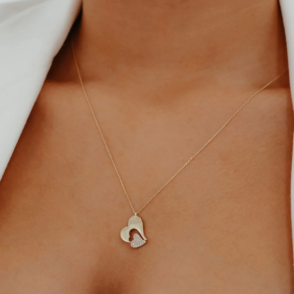 2.80 Gram 14 Ayar Taşlı Kalp İçinde Taşlı Küçük Kalp Altın Kolye AAKLY0166