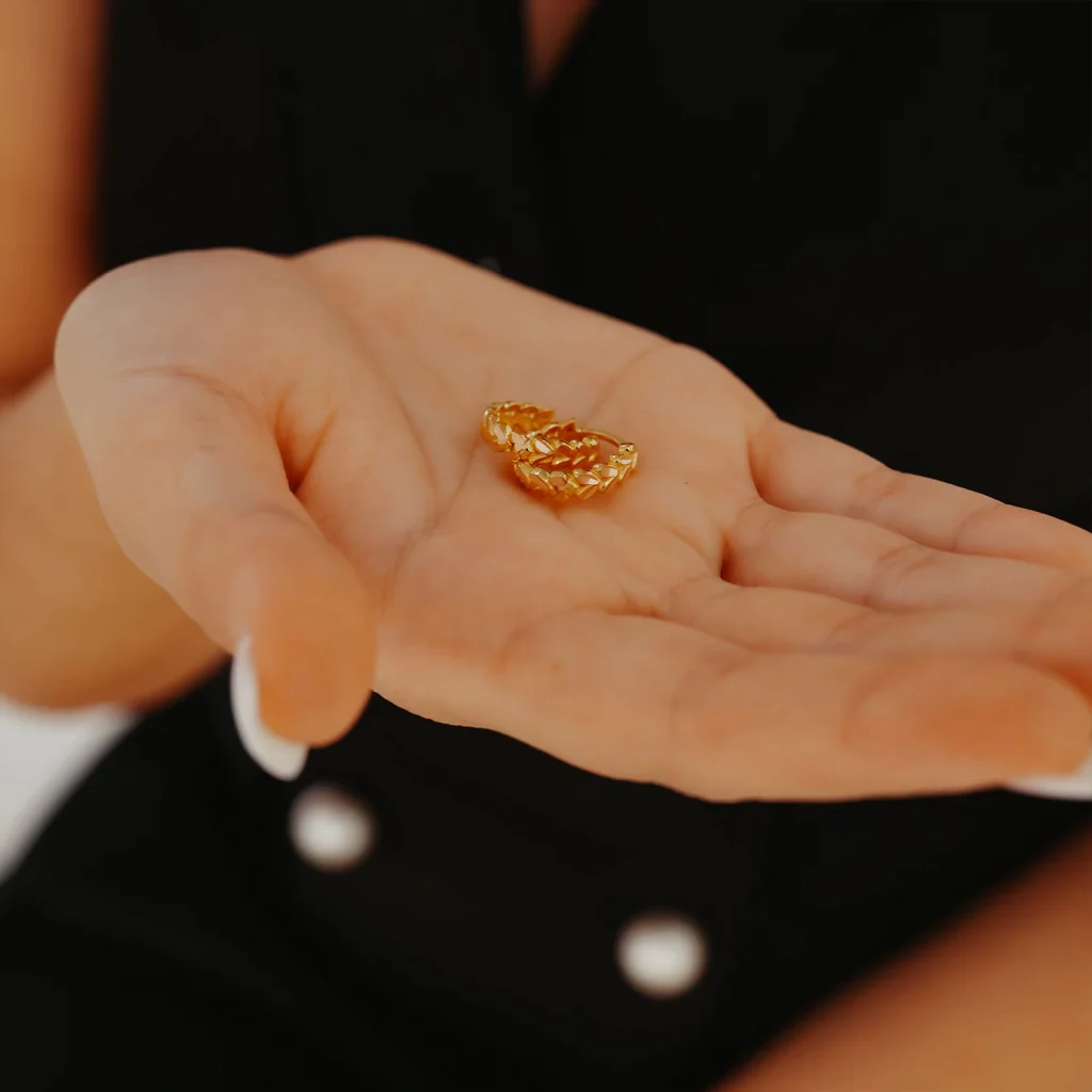 Ajda Halka Ayna Detay Altın Küpe AAKPE096