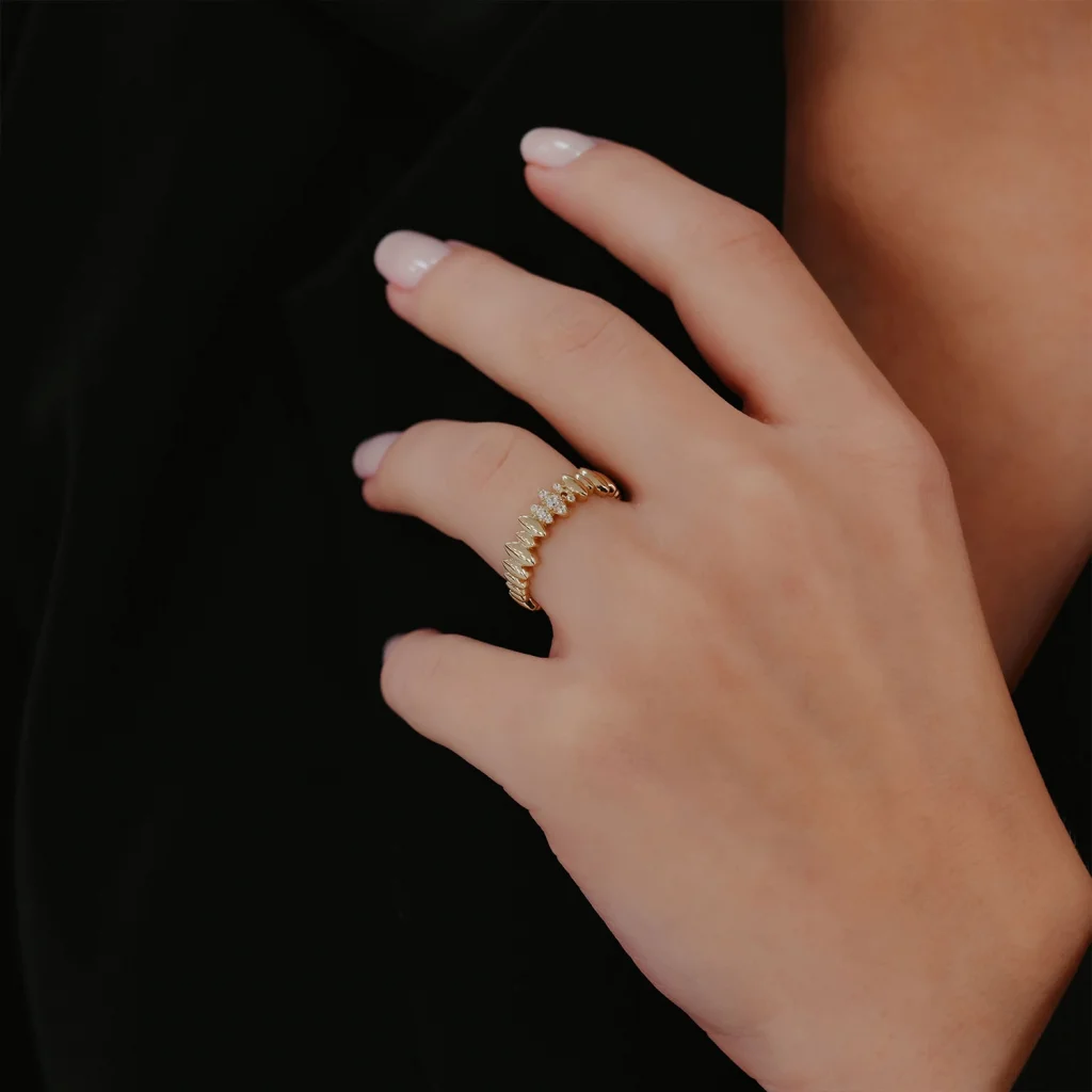 Taşlı Dağınık Sütun Model Altın Yüzük AAYZK0223