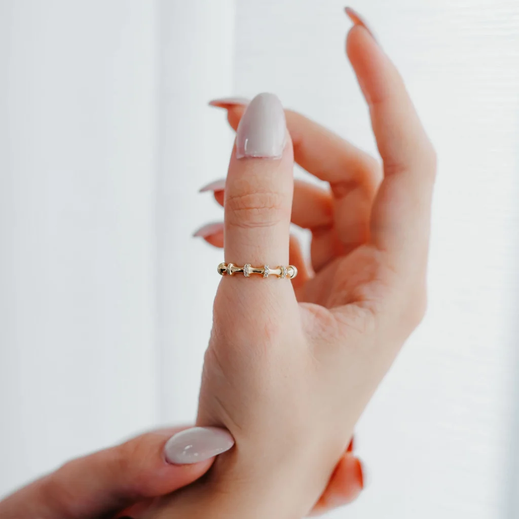Taşlı Dağınık Sütun Model Altın Yüzük AAYZK0223
