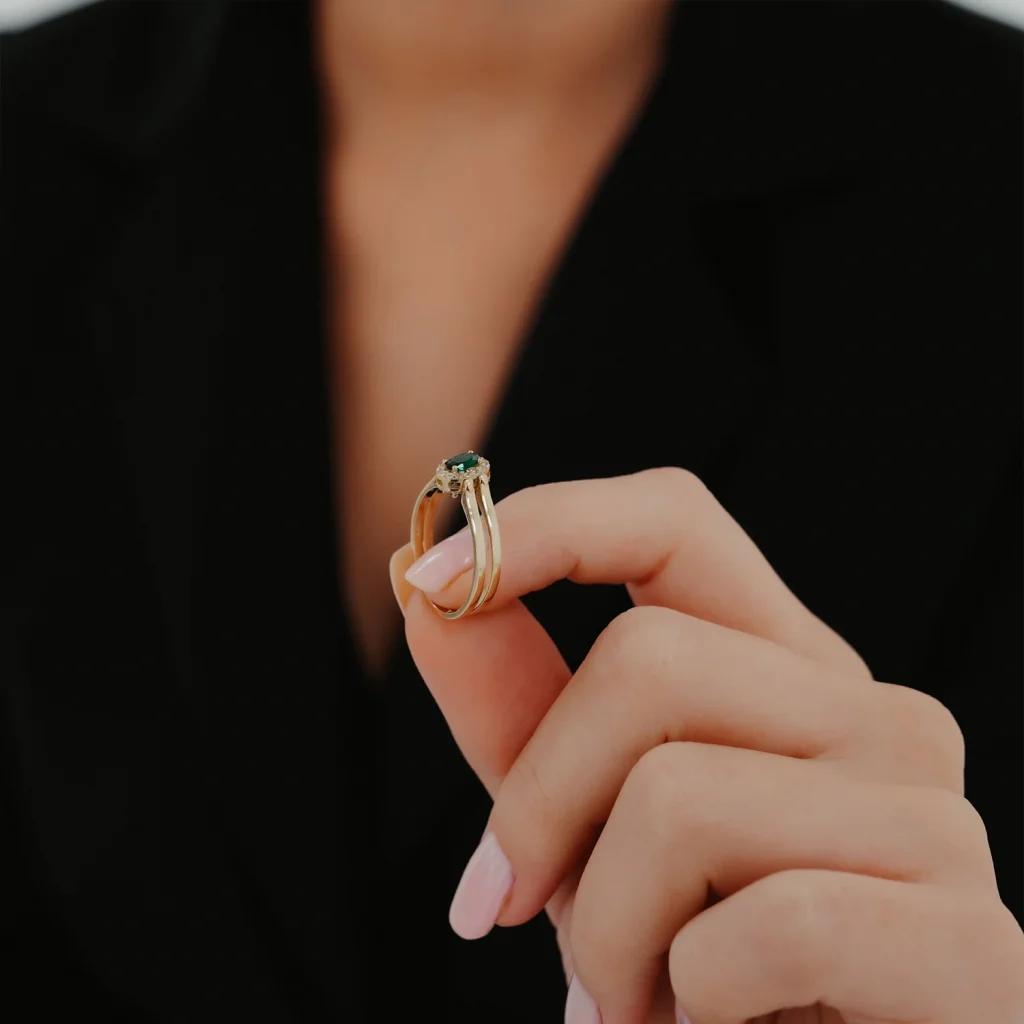 Zümrüt Taşlı Çift Şeritli Altın Yüzük AAYZK0152