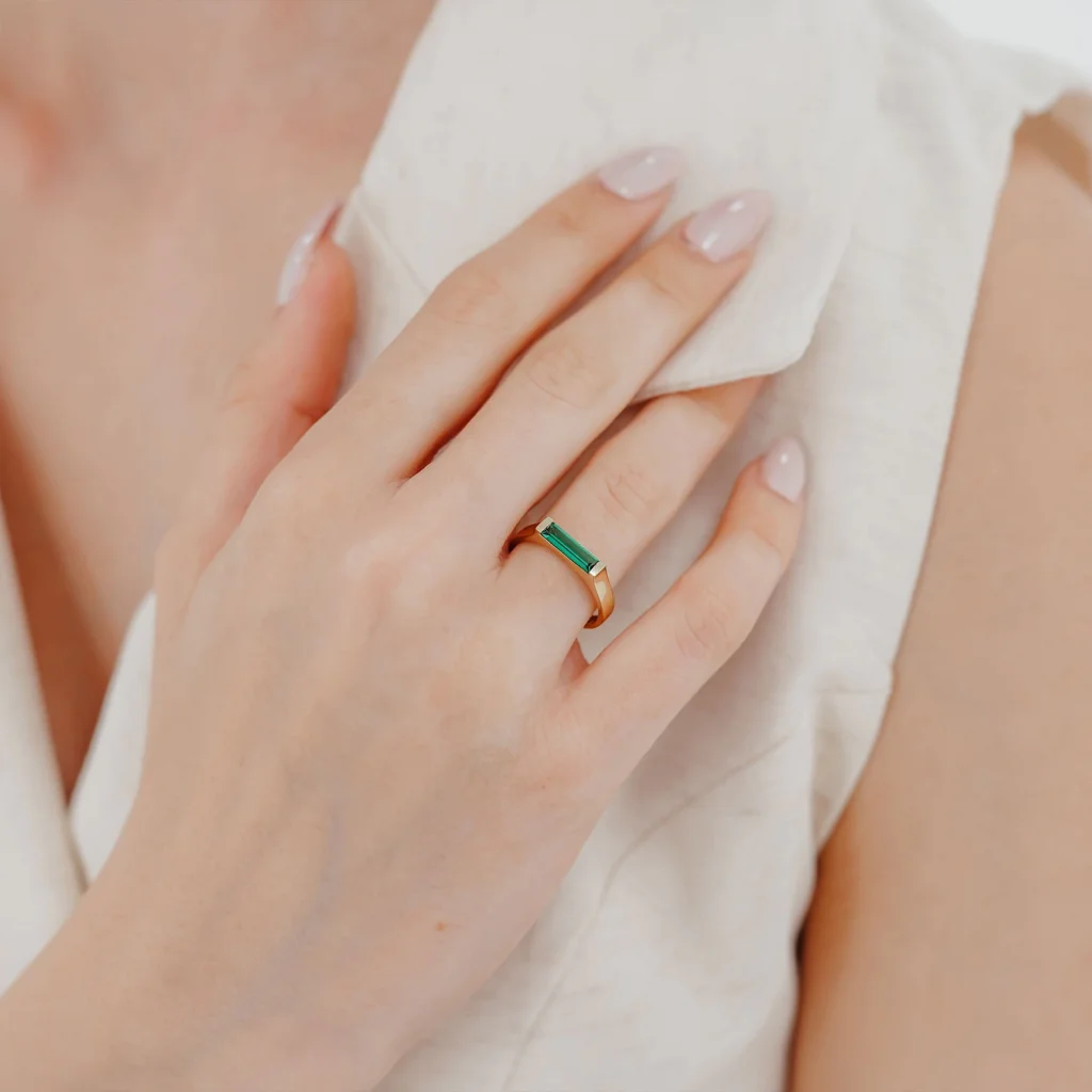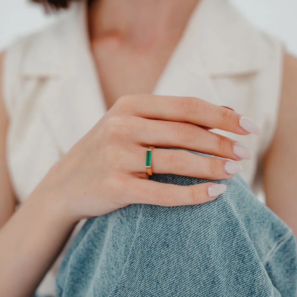 1,79 Gram 14 Ayar Zümrüt Sütun Form Baget Altın Yüzük AAYZK054