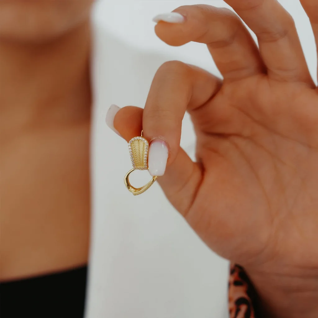 Taşlı Desenli Altın Küpe AAKPE048