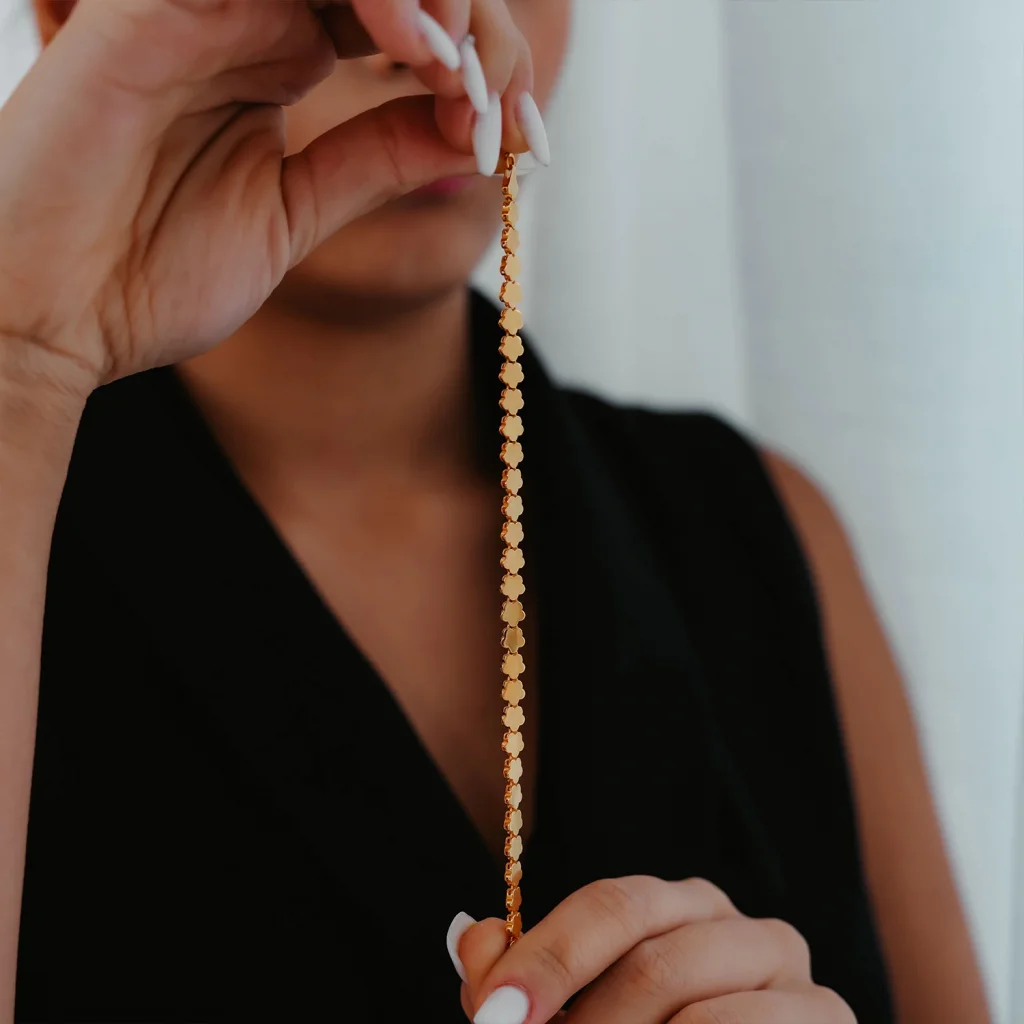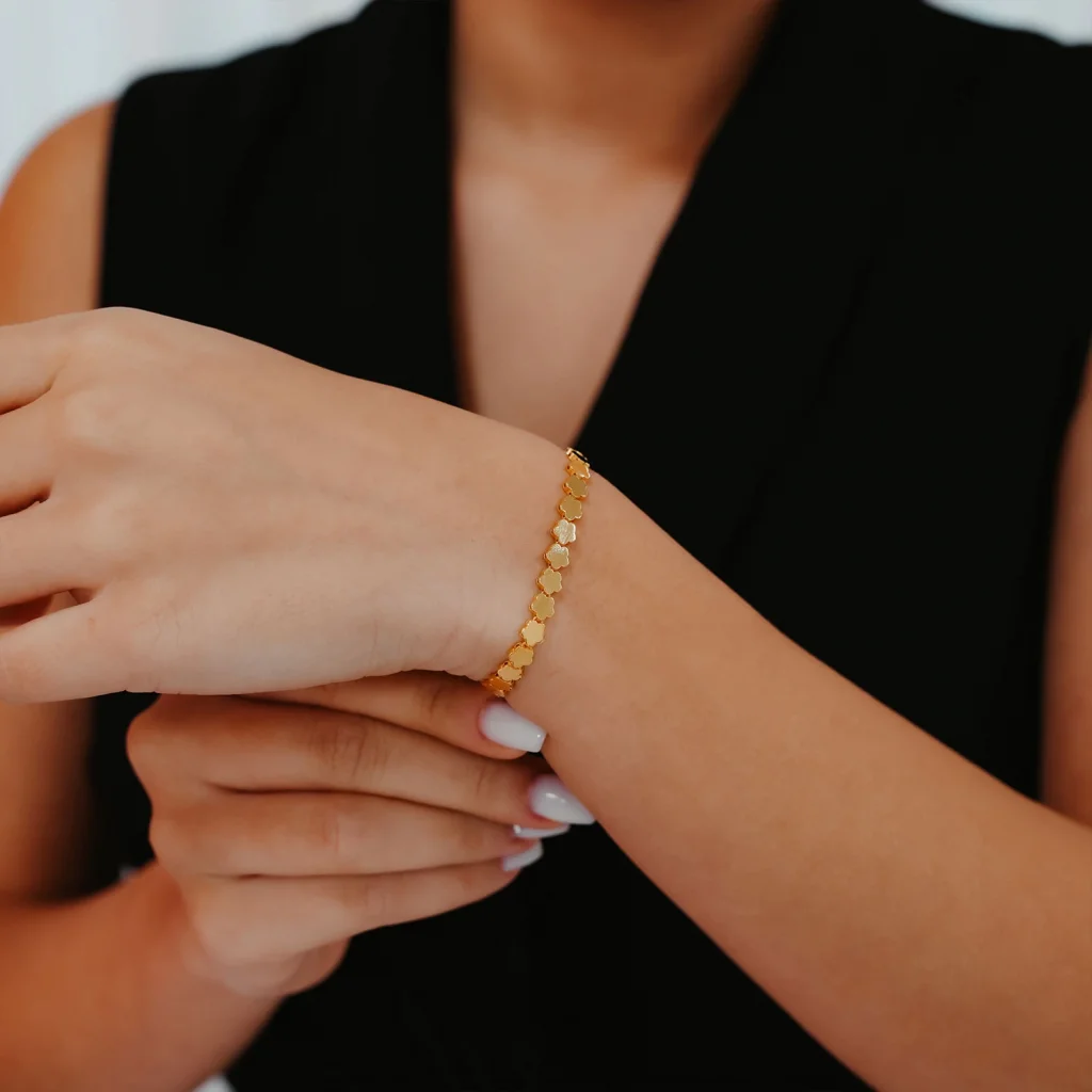Çiçek Pul Detay Zincir Altın Bileklik AABLK037